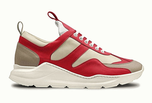 Crafted in a commanding palette of deep crimson red, cool lunar grey the Sturgs silhouette fuses athletic precision with street-luxury edge. The premium suede and mesh upper delivers breathable comfort while the bold color-blocking creates a dynamic visual rhythm that turns every that turns every stride into performance art.